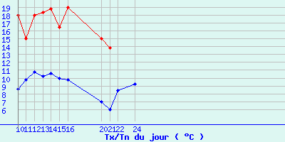| Statistiques du mois | | Jours de fortes chaleurs (Tmax >= 30°C) | 0 | | Jours de très fortes chaleurs (Tmax >= 35°C) | 0 | | Jours avec nuit tropicale (Tmin >= 20°C) | 0 | | Jours avec gelée (Tmin <= 0°C) | 0 | | Jours avec forte gelée (Tmin <= -5°C) | 0 | | Jours sans dégel (Tmax <= 0°C) | 0 | | Jours avec pluie (RR >= 1mm) | 1 |