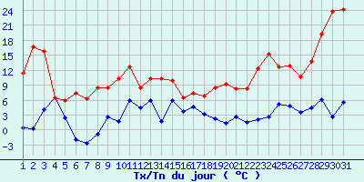 | Statistiques du mois | | Jours de fortes chaleurs (Tmax >= 30°C) | 0 | | Jours de très fortes chaleurs (Tmax >= 35°C) | 0 | | Jours avec nuit tropicale (Tmin >= 20°C) | 0 | | Jours avec gelée (Tmin <= 0°C) | 3 | | Jours avec forte gelée (Tmin <= -5°C) | 0 | | Jours sans dégel (Tmax <= 0°C) | 0 | | Jours avec pluie (RR >= 1mm) | 3 |