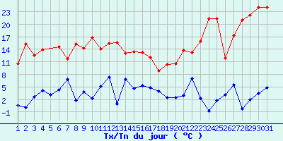| Statistiques du mois | | Jours de fortes chaleurs (Tmax >= 30°C) | 0 | | Jours de très fortes chaleurs (Tmax >= 35°C) | 0 | | Jours avec nuit tropicale (Tmin >= 20°C) | 0 | | Jours avec gelée (Tmin <= 0°C) | 2 | | Jours avec forte gelée (Tmin <= -5°C) | 0 | | Jours sans dégel (Tmax <= 0°C) | 0 | | Jours avec pluie (RR >= 1mm) | 3 |