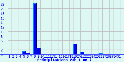 | Statistiques du mois | | Jours de fortes chaleurs (Tmax >= 30°C) | 0 | | Jours de très fortes chaleurs (Tmax >= 35°C) | 0 | | Jours avec nuit tropicale (Tmin >= 20°C) | 0 | | Jours avec gelée (Tmin <= 0°C) | 0 | | Jours avec forte gelée (Tmin <= -5°C) | 0 | | Jours sans dégel (Tmax <= 0°C) | 0 | | Jours avec pluie (RR >= 1mm) | 5 |