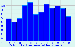 | Jan | Fev | Mars | Avr | Mai | Juin | Juil | Aout | Sept | Oct | Nov | Dec | Année | | Temp. max. (°C) | 3.5 | 4.2 | 7.6 | 10.9 | 15.6 | 19.6 | 21.4 | 21.3 | 17.3 | 13 | 6.5 | 3.6 | 12.1 | | Temp. moy. (°C) | 0.2 | 0.7 | 3.4 | 6.4 | 10.7 | 14.3 | 15.9 | 15.9 | 12.4 | 9 | 3.4 | 0.5 | 7.8 | | Temp. min. (°C) | -3.1 | -2.9 | -0.8 | 1.8 | 5.9 | 9.1 | 10.4 | 10.6 | 7.5 | 5 | 0.2 | -2.5 | 3.5 | | Jan | Fev | Mars | Avr | Mai | Juin | Juil | Aout | Sept | Oct | Nov | Dec | Année | | Jours Tx > 30°C | 0 | 0 | 0 | 0 | 0 | 0.2 | 1.1 | 1.5 | 0 | 0 | 0 | 0 | 2.8 | | Jours Tx > 25°C | 0 | 0 | 0 | 0 | 0.8 | 4.9 | 7.6 | 7.4 | 1.1 | 0.1 | 0 | 0 | 22 | | Jours Tx < 0°C | 7.5 | 6.8 | 3.7 | 0.2 | 0 | 0 | 0 | 0 | 0 | 0.1 | 3.1 | 7.9 | 29.2 | | Jours Tn < 0°C | 22.9 | 19.9 | 17.6 | 9.9 | 1.3 | 0.1 | 0 | 0 | 0.1 | 3.5 | 14.2 | 20.8 | 110.4 | | Jours Tn < -5°C | 9.3 | 7.9 | 4.6 | 0.4 | 0 | 0 | 0 | 0 | 0 | 0.6 | 3.6 | 8.9 | 35.4 | | Jours Tn < -10°C | 2.8 | 2.3 | 0.7 | 0 | 0 | 0 | 0 | 0 | 0 | 0 | 0.4 | 2.7 | 8.9 | | | | Jan | Fev | Mars | Avr | Mai | Juin | Juil | Aout | Sept | Oct | Nov | Dec | Année | | RR mensuel (mm) | 68.2 | 58.5 | 68.3 | 108.7 | 117.3 | 80.6 | 87.7 | 112 | 100.1 | 106.5 | 99.1 | 75.2 | 1082.2 | | Jan | Fev | Mars | Avr | Mai | Juin | Juil | Aout | Sept | Oct | Nov | Dec | Année | | Jours RR > 1mm | 12.2 | 10.7 | 11.1 | 13.7 | 12.4 | 9.9 | 10 | 11 | 9.9 | 11.6 | 13.4 | 12 | 137.9 | | Jours RR > 5mm | 5.5 | 4.2 | 5.3 | 6.5 | 7.5 | 5.6 | 5.2 | 6.5 | 5.4 | 6.4 | 6.9 | 4.6 | 69.6 | | Jours RR > 10mm | 2.3 | 1.5 | 2.1 | 3.5 | 4.5 | 2.6 | 3 | 3.7 | 2.7 | 3.6 | 2.9 | 2.1 | 34.6 | | | | Jan | Fev | Mars | Avr | Mai | Juin | Juil | Aout | Sept | Oct | Nov | Dec | Année | | Vent moyen (km/h) | 9 | -- | 9.4 | 9 | 7.9 | 7.2 | 6.8 | 6.5 | 6.5 | 7.9 | 9 | 9 | -- | | Jan | Fev | Mars | Avr | Mai | Juin | Juil | Aout | Sept | Oct | Nov | Dec | Année | | Jours rafales >= 58km/h | 3.1 | -- | 3.7 | 1.5 | 1.2 | -- | 1.5 | 1.2 | 0.9 | 2.2 | 3.2 | -- | -- | | Jours rafales >= 100km/h | 0.1 | -- | 0 | 0 | 0 | -- | 0 | 0 | 0 | 0 | 0 | -- | -- |